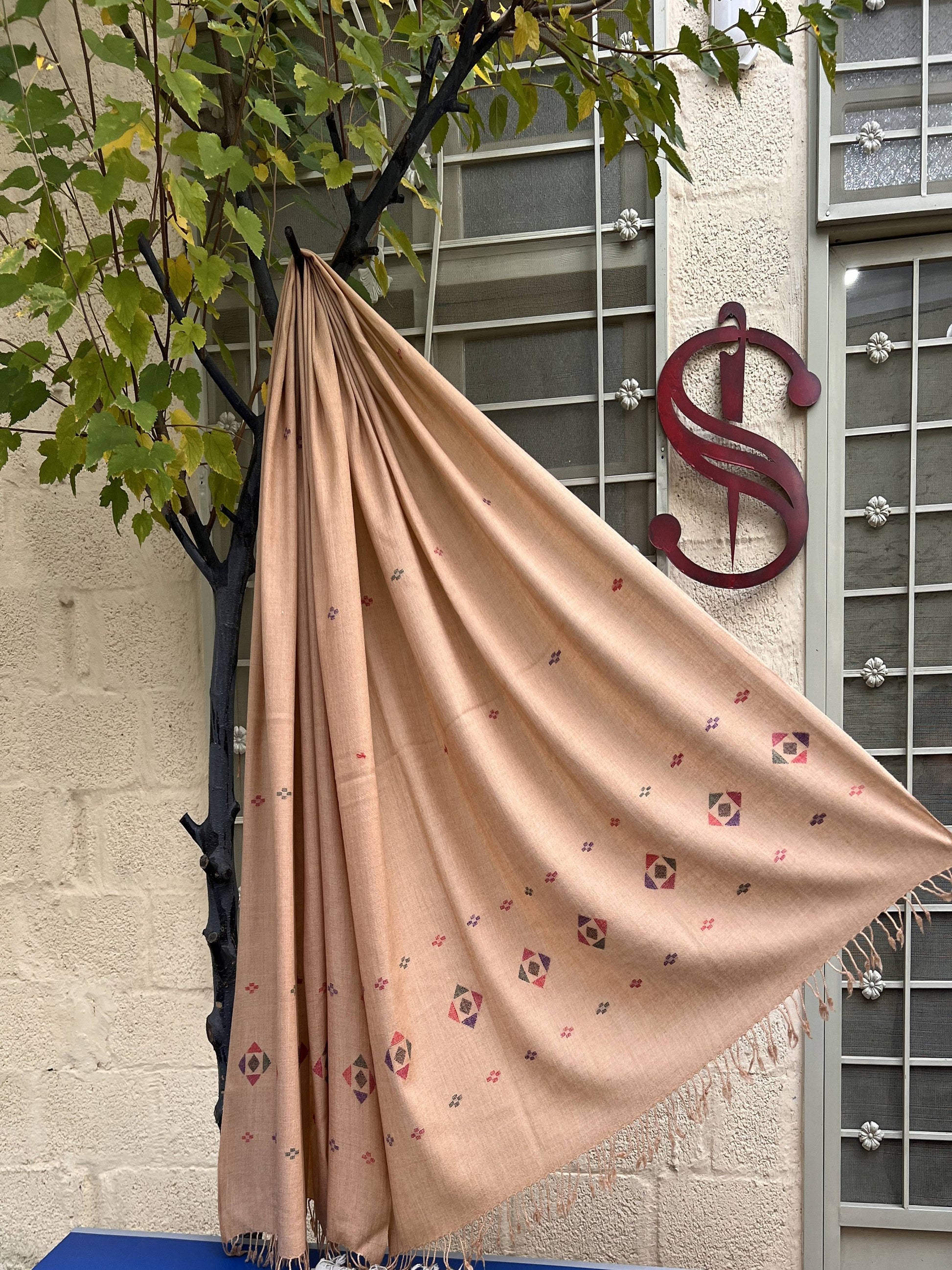 Peach Color Ladies Khaddi Embroidery Swati Woolen Shawl | KKC02