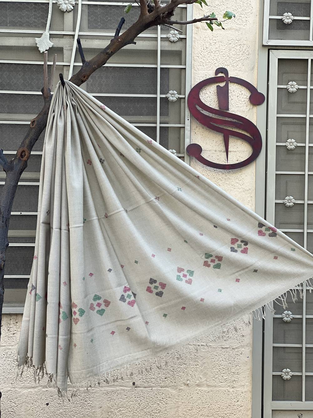 Saidaar Ladies Khaddi Embroidery Shawl is made on Handlooms and Embroidery is done simultaneously during waving of shawl.