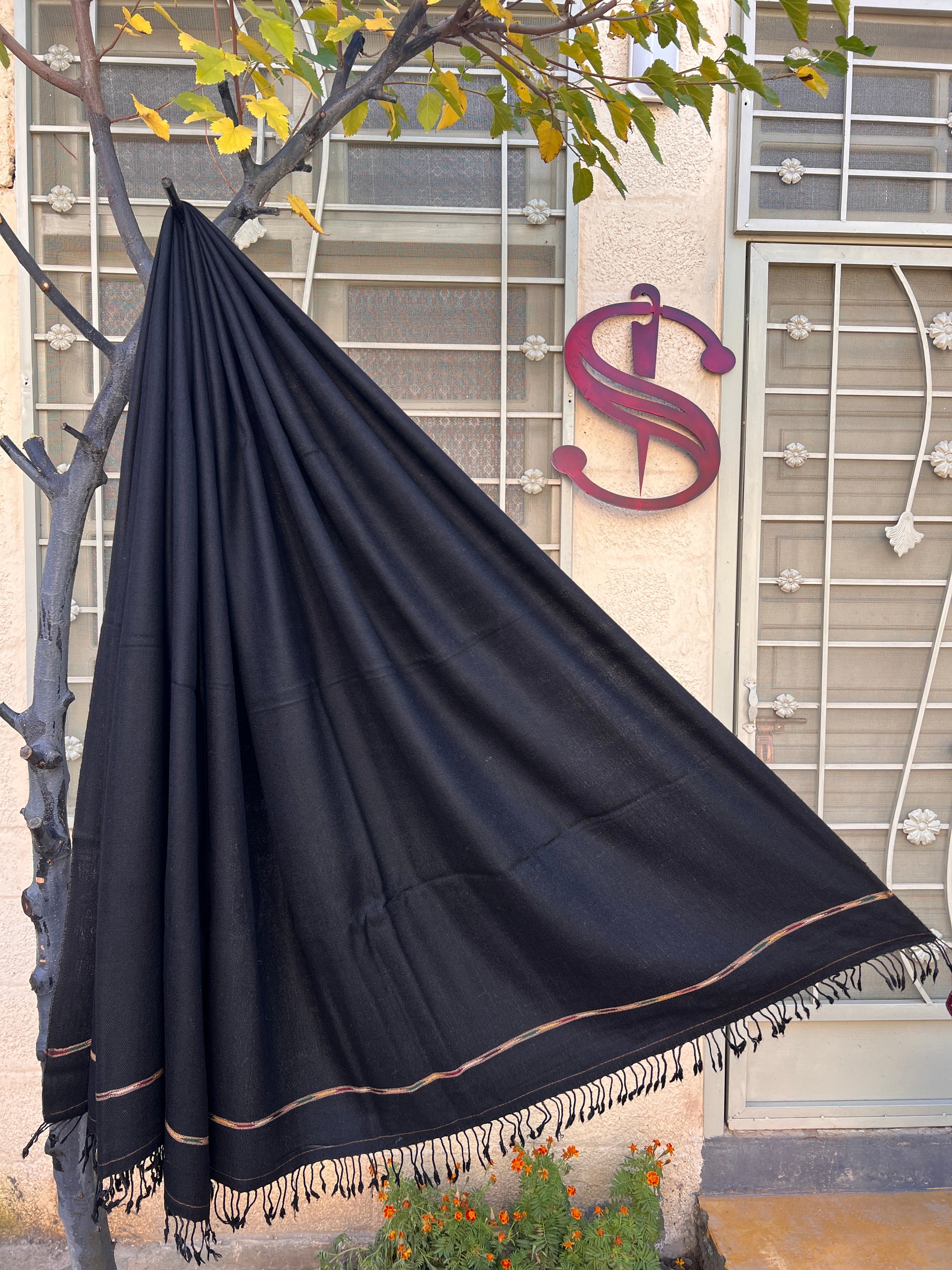 Swati Saidaar Black Woollen Shawl | Narrow Border